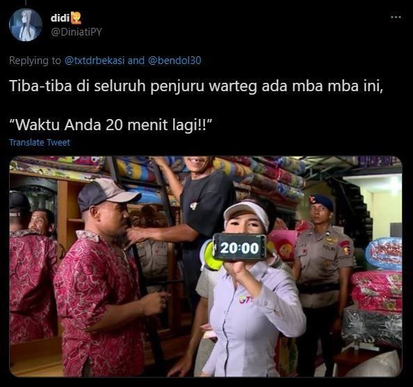 Makan yang dikejar waktu mengingatkan kita dengan program Uang Kaget. Bila Uang Kaget mengatur peserta untuk berbelanja sesuai waktu yang ditentukan, kini orang dibatasi makan di warteg sesuai waktu yang ditentukan.