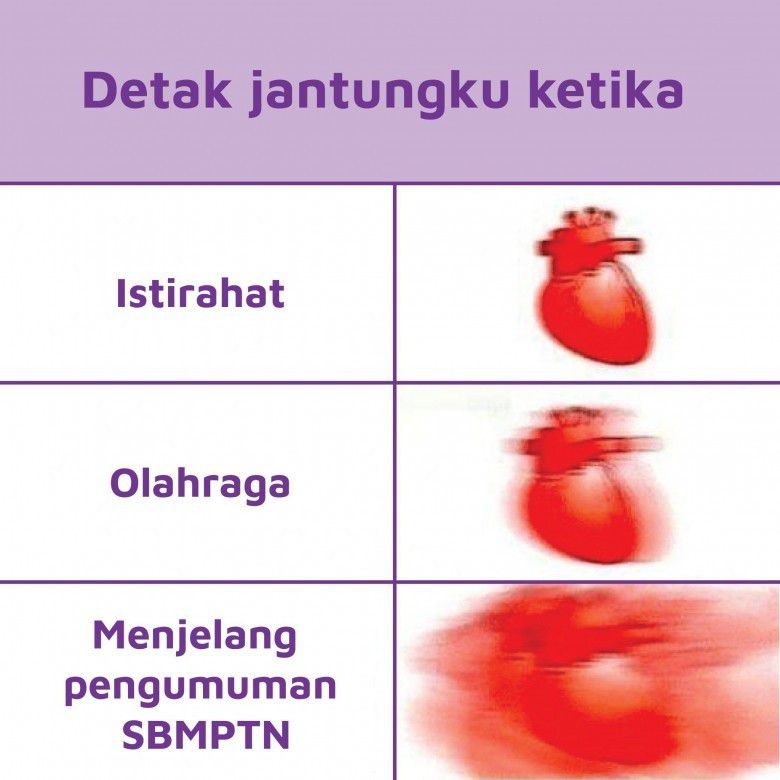 1. Mungkin beginilah keadaan jantungmu saat menunggu hasil pengumuman SBMPTN. Deg-degan banget, gak sih?