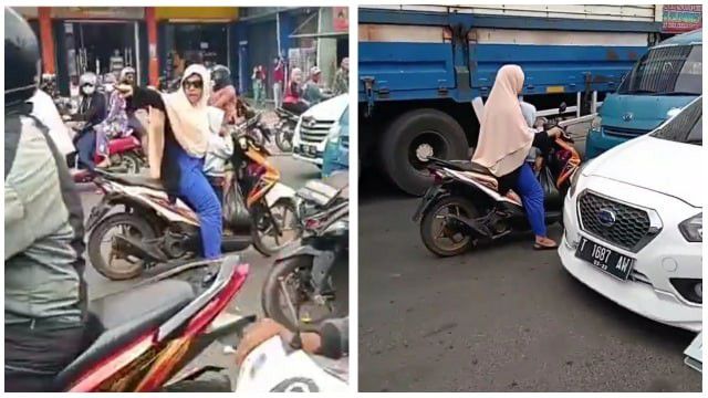Potret Kocak Emak-Emak Naik Motor (via Twitter.com/@Husen_Jafar)