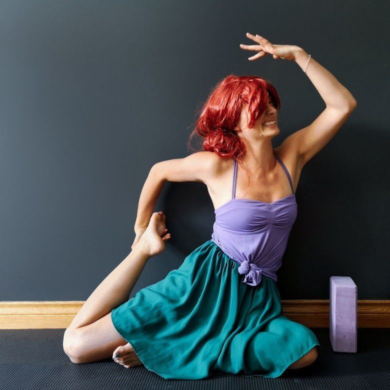 Princess Disney Ariel dari "Little Mermaid" udah hidup di daratan dan jadi rajin yoga biar bisa meregangkan otot kakinya. Asli, nih gambar kocak banget deh ... wkwkwk.