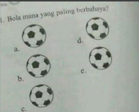 Di soal ini, coba deh bedakan dan jawab, bola mana yang paling berbahaya gaes? Kok kayaknya bentuknya bola sama semua ya, ni mata kita yang salah, apa soalnya yang luar biasah?