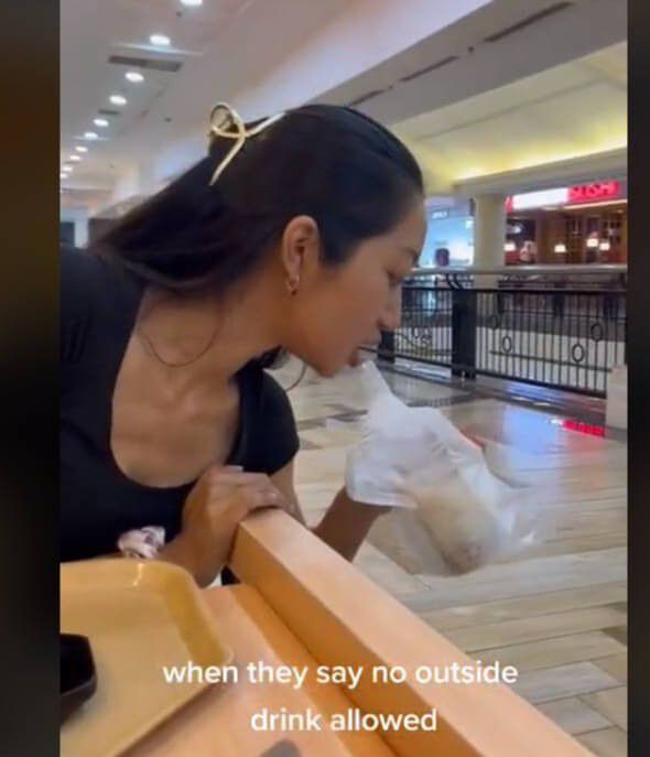 Seorang wanita melakukan hal tak terduga saat dilarang membawa makanan dan minuman dari luar restoran (tiktok.com)