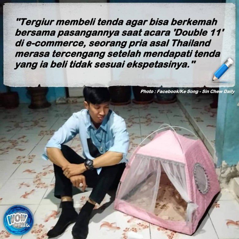 Tergiur dengan diskon 11.11, seorang pria membeli sebuah tenda untuk berkemah. Pria tersebut berencana menggunakannya untuk berkemah bersama kekasihnya. Namun, ia justru terkejut saat barang pesanannya sampai di rumah.
