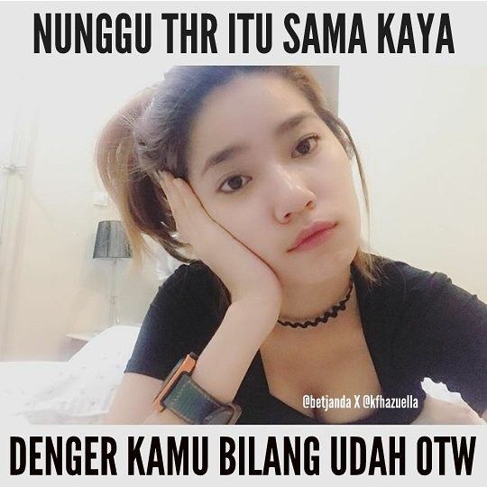 Ketika dapat informasi akan ada pencairan THR semua orang akan menunggu dengan bahagia. Tapi ada kalanya orang sampai tidak sabaran menunggu THR dan menganggap THR masih dalam perjalanan tapi nggak sampai-sampai. Itu berasa kayak ada orang bilang lagi OTW tapi nggak sampai di tujuan, jadi orang kelamaan nunggu sampai jadi kesal.