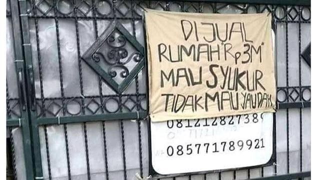 Pemilik rumah ini ingin menjual rumah namun sepertinya setengah-setengah menjualnya. Buktinya dia terang-terangan mencantumkan harga rumah tersebut. Namun bila orang tidak tertarik dia pun ikhlas dan tidak memaksanya. Nggak ada harga nego nih emangnya?