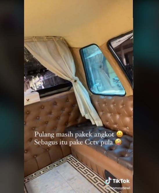 Saat pulang, wanita ini ternyata kembali mendapatkan angkot versi sultan. Hal yang membedakan yaitu warna interiornya.