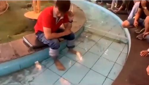 Video tersebut awalnya diunggah oleh akun Twitter @recehtapisayng. Dalam video berdurasi 14 detik itu tampak seorang pemuda mengenakan kemeja berwarna merah mencelupkan kaki ke dalam kolam penuh ikan.