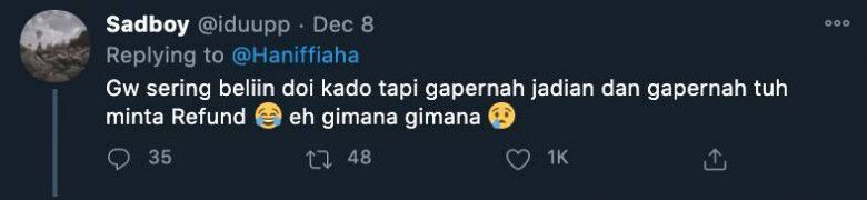 @iduupp : Gw sering beliin doi kado tapi gapernah jadian dan gapernah tuh minta Refund. eh gimana gimana.