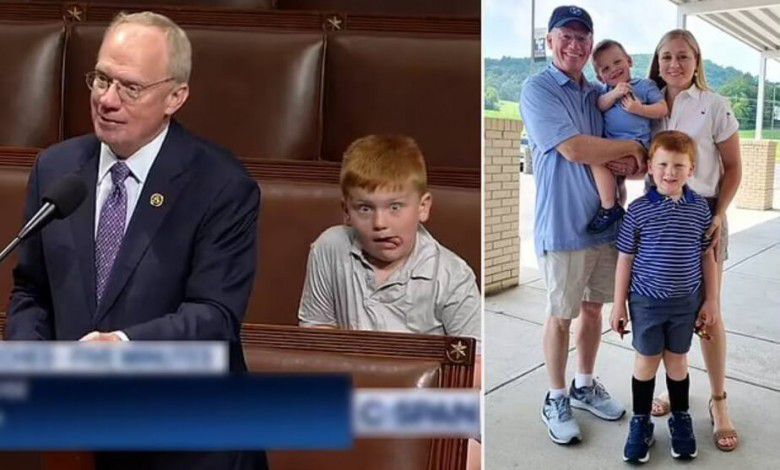 Momen lucu anak John Rose yang ikut menemani pidato di Kongres AS (via house of television via AP)