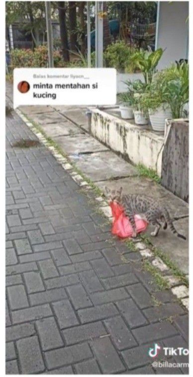 "Ya udah jalannya susah banget pak. Pak, pak mau dibantuin nggak? Bapaak," ucap wanita ini kepada kucing tersebut.