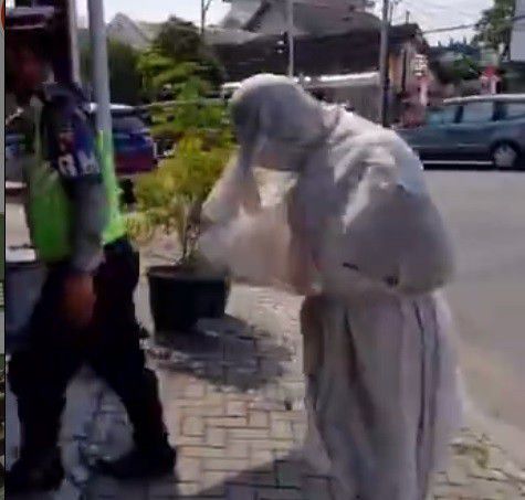 Seorang yang Tampil Mirip Pocong di Bawa ke Pos Polisi (Instagram @mlampahsolo)
